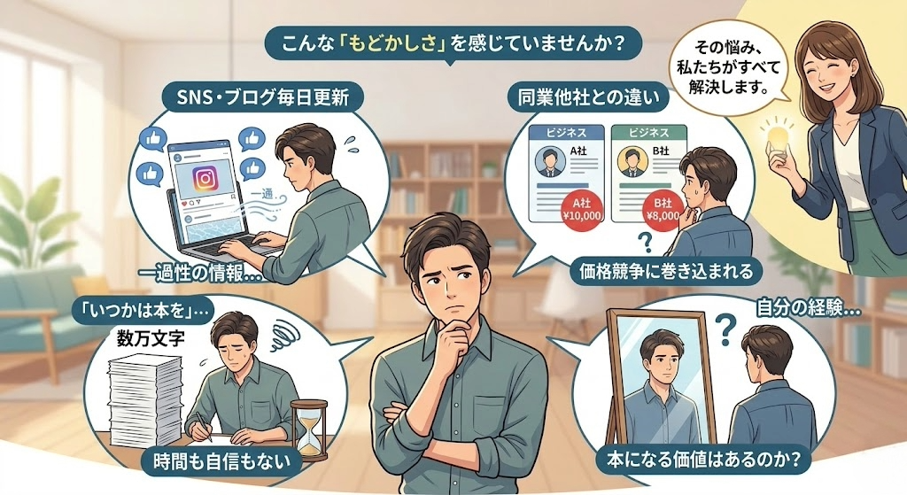 - 自分の経験が本当に「本」になるほどの価値があるのか不安